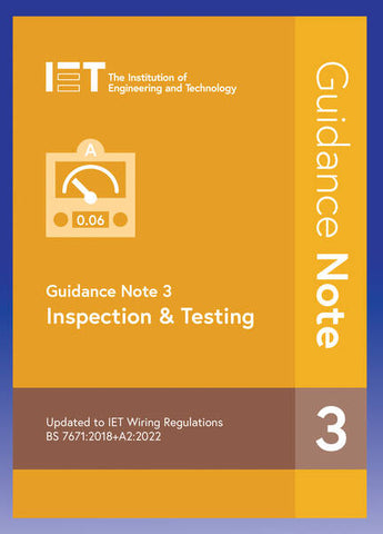 Guidance Note 3: Inspection & Testing is a basic guide for all those involved in the testing and inspection of electrical installations. It also contains essential guidance for those studying for inspection and testing qualifications and has been fully updated to BS 7671:2018:2022.