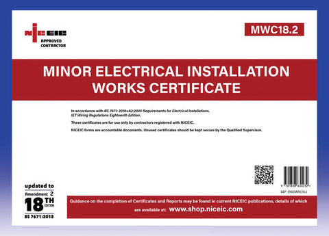 The NICEIC Minor Electrical Installation Works Certificate is for additions or changes to individual circuits only, but does not extend to the provision of new circuits. Examples of where this certificate can be used include adding sockets or lighting points to an existing circuit. This certificate can also be used to replace equipment such as fittings or light fittings, but not to replace switchboards or similar items.