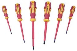 A quality set of insulated screwdrivers has a safety rating of 1000 volts, is impact resistant and comfortable to hold.